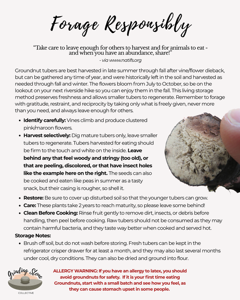 Issue 2 explores the history, ecology, and language of the Groundnut (Apios americana), an Indigenous food long cultivated and harvested across Turtle Island. Through archival research, Indigenous language records, ethnobotanical sources, and historical accounts, it traces how groundnuts functioned as a high-protein staple, a soil-building nitrogen fixer, and a food embedded in Indigenous stewardship. The zine highlights the many Indigenous names for the plant, examines colonial suppression of Native foraging practices, and seeks Native voices to reconnect the plant with its agricultural and cultural context. We invite readers to reconsider groundnuts not as a wild plant, but as a staple food in need of further research.
